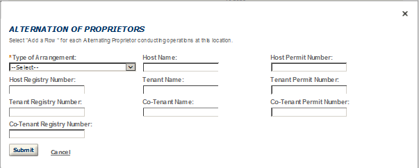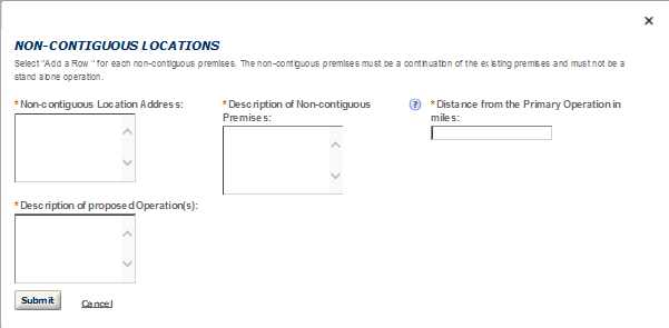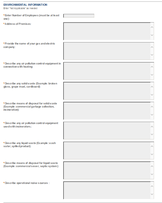 PONL Screen Shots for Wine Premises Application