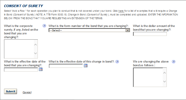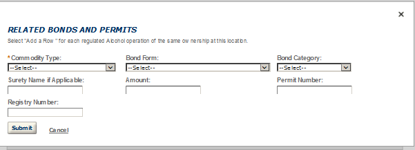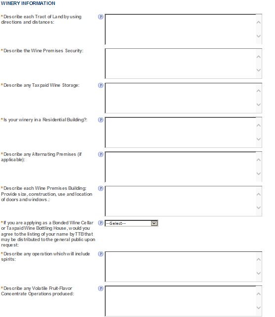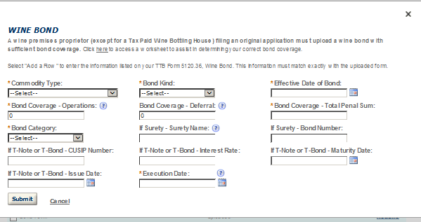 (Equivalent to TTB F 5120.25, Application to Establish and Operate Wine Premises, TTB F 5120.36, Wine Bond, and other TTB forms submitted by wine premises applicants)
