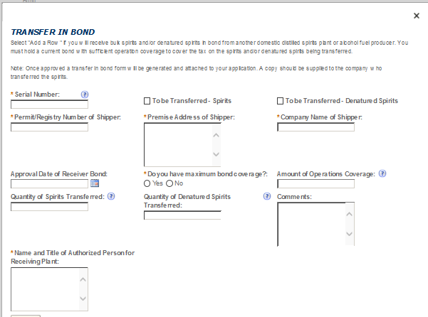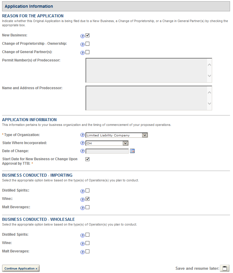 Recreating Application Data on Certain TTB Forms