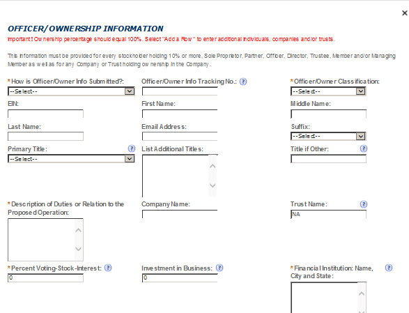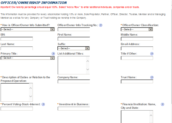 Owner or Officer Information Application Tracking Number |