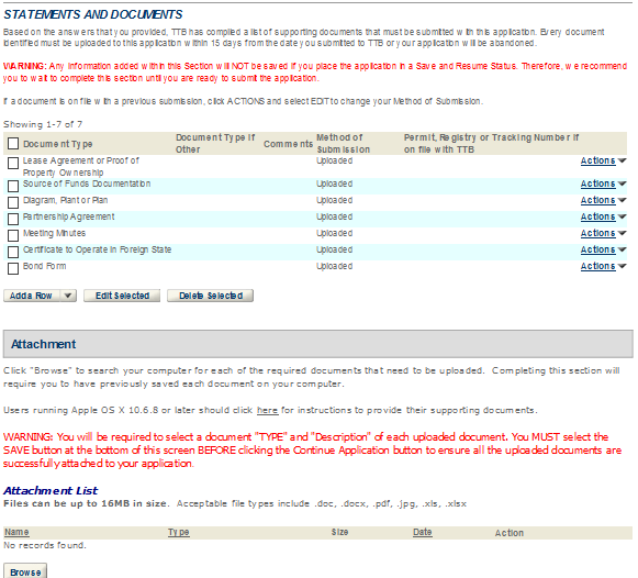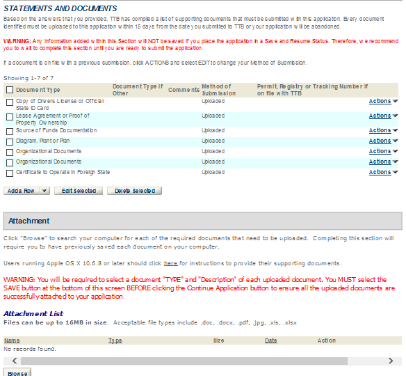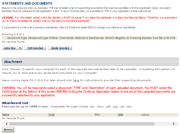 TTB will attach to your application any documents that indicate its final disposition. This may include an approval letter, permit, registration, bond, power of attorney and other approval documents (as applicable) or information regarding a denial, withdrawal, or abandonment. To access these documents, click on the arrow next to “Supporting Documents and Attachments.” Then, click on the name of the document, and select “Open” to view, print, or save the TTB attachment.