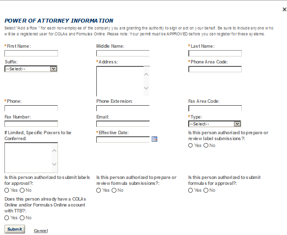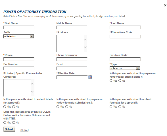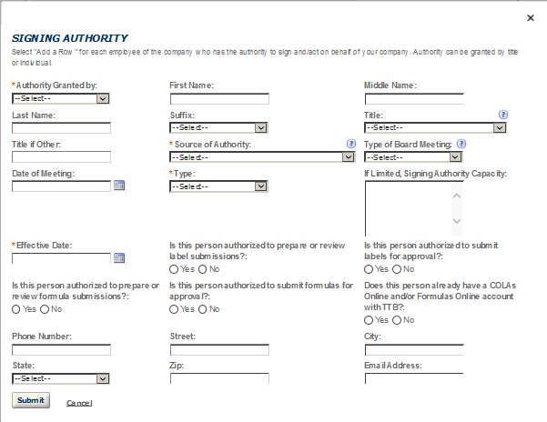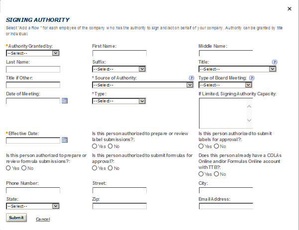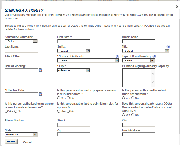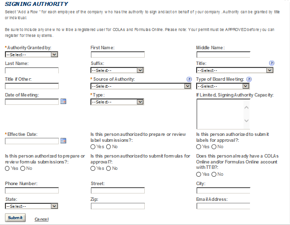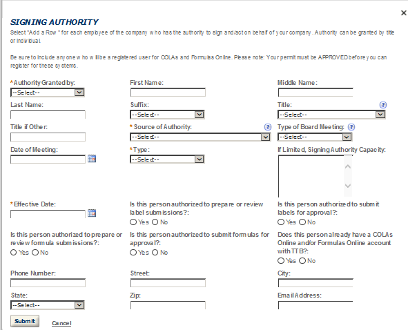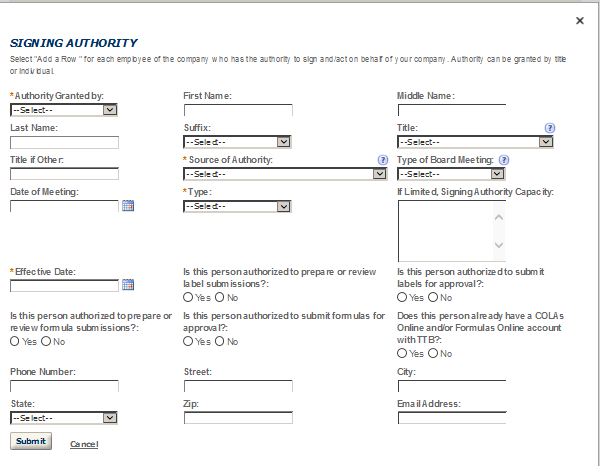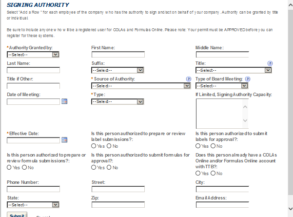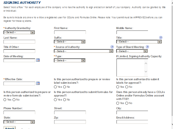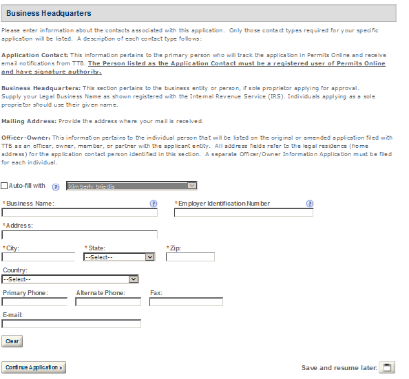Business Headquarters - This contact includes information about the primary person within the applicant company with whom TTB will, if necessary, conduct a phone interview about the proposed operations. This person must have signing authority on behalf of the applicant business, and cannot be a consultant.