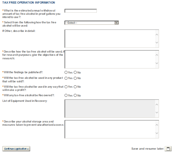 2010-USTFA-00248-O United States Government Tax-free Alcohol User Original Application Tracking Number(assigned when assigned to specialist for processing) |