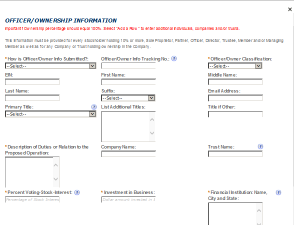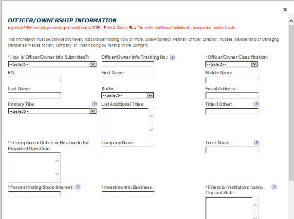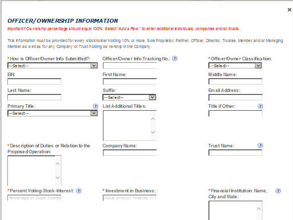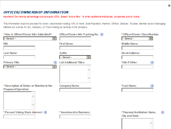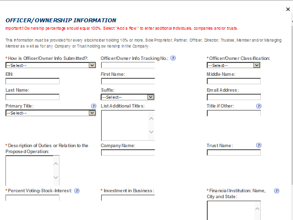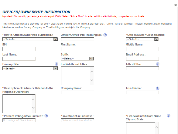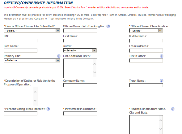 Officer-Owner – This contact refers to an owner or officer of an applicant company. This contact information is provided in the “Application for Owner Officer Information. “