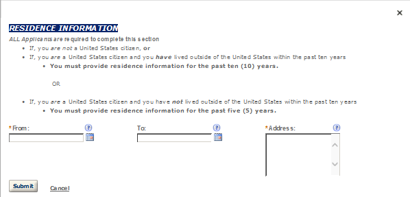 Within each application, there are required fields which you must complete. These required fields are marked with a red asterisk *. Certain fields can become “required” based on your answers to previous questions. Likewise, certain questions will become unavailable, or “grayed out” based on your answers to previous questions.