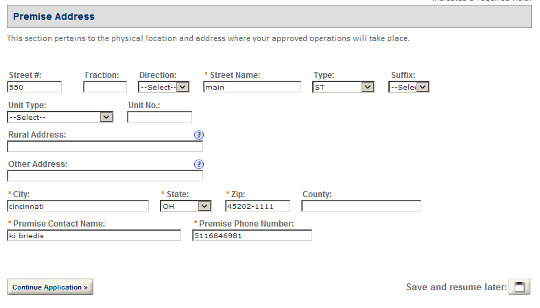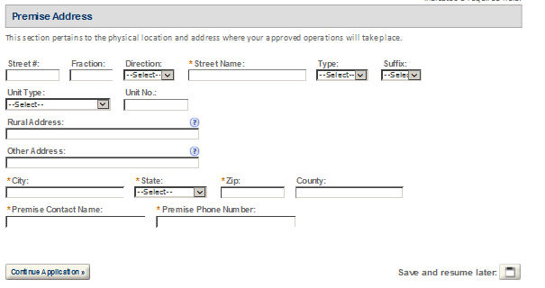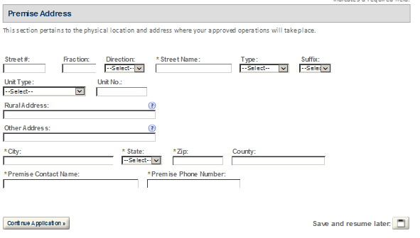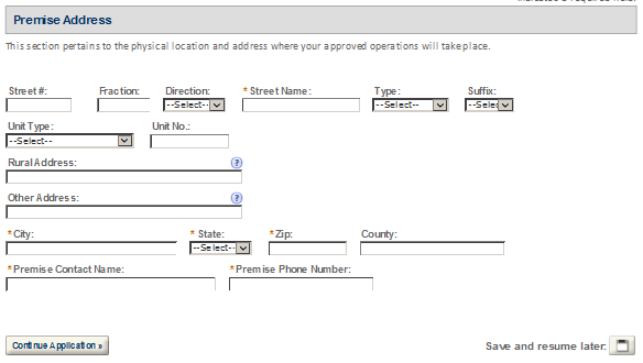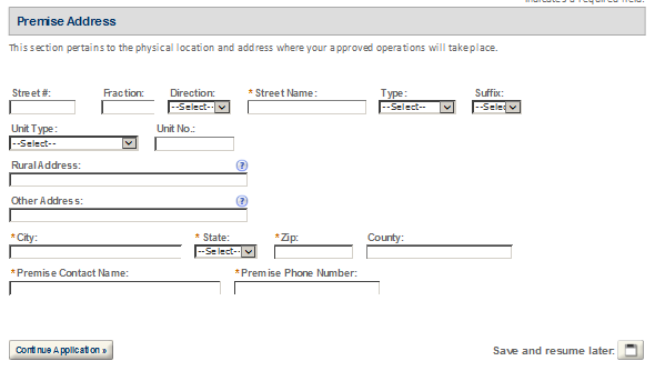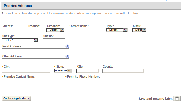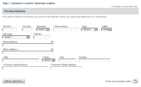 Premises Address – This contact includes information about the address where the proposed operations will take place.