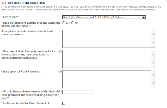 Applications for sake plants, experimental wineries and DSPs, vinegar plants, volatile fruit-flavor concentrate plants, AFP applications for science fairs and school experiments and pilot breweries must be submitted as paper applications.