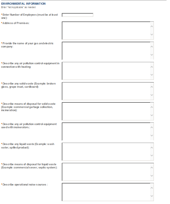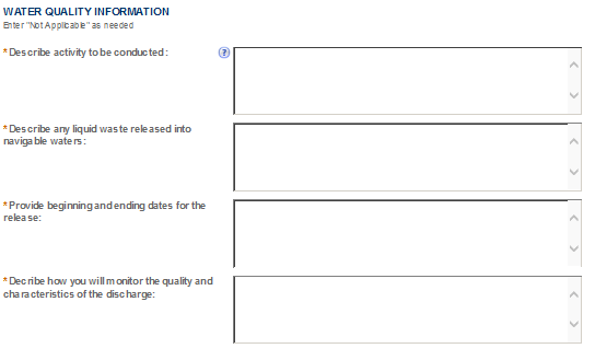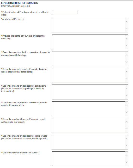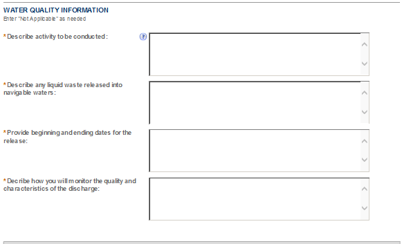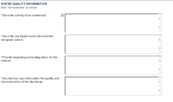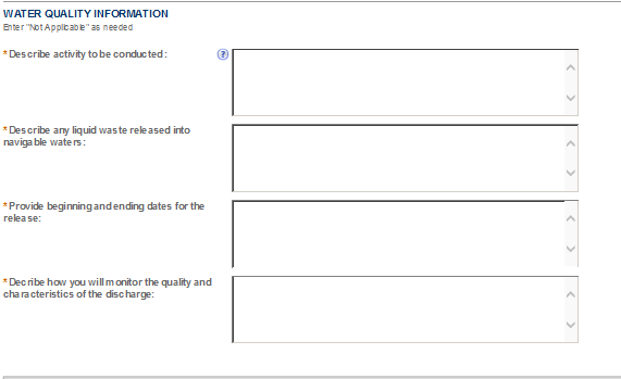 Be sure to read the general help for each application information section, as some sections may not be required based on your proposed operations. This is especially true of the “Application Tables” page of the Application for OOI.