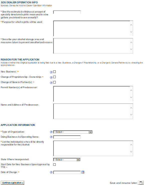 Specially Denatured Spirits Dealer Application Tracking Number (assigned at submission) |