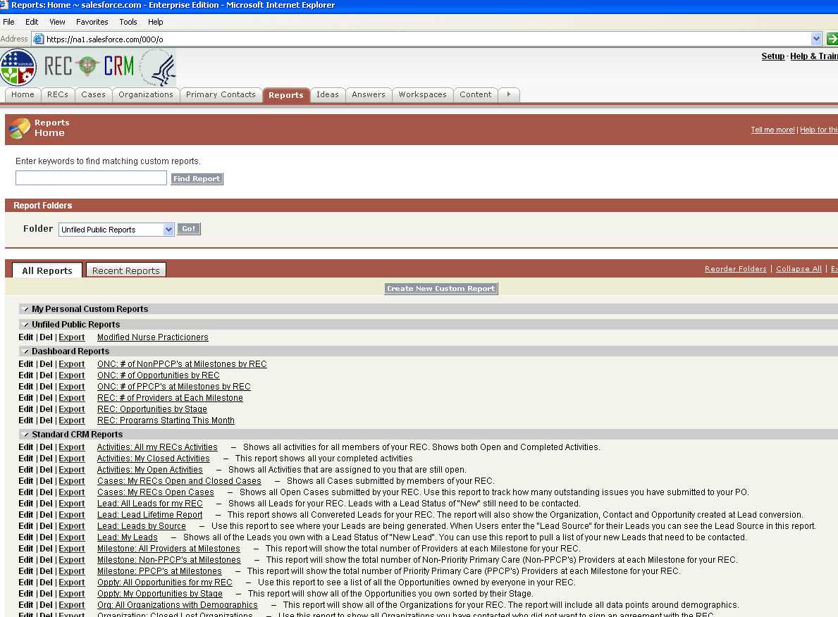Regional Extension Center Cooperative Agreement Program (CRM Tool)