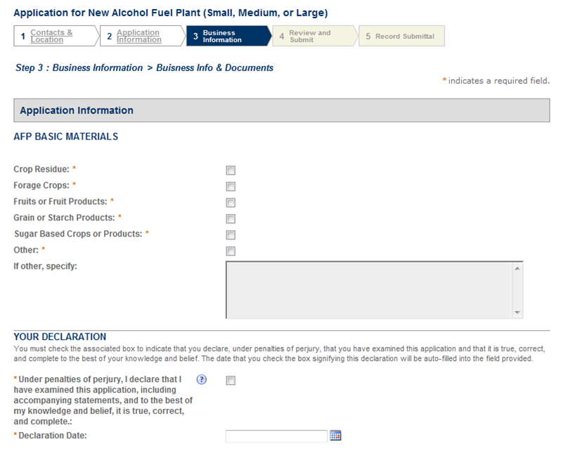 Application for New Alcohol Fuel Plant (Small, Medium, or Large)