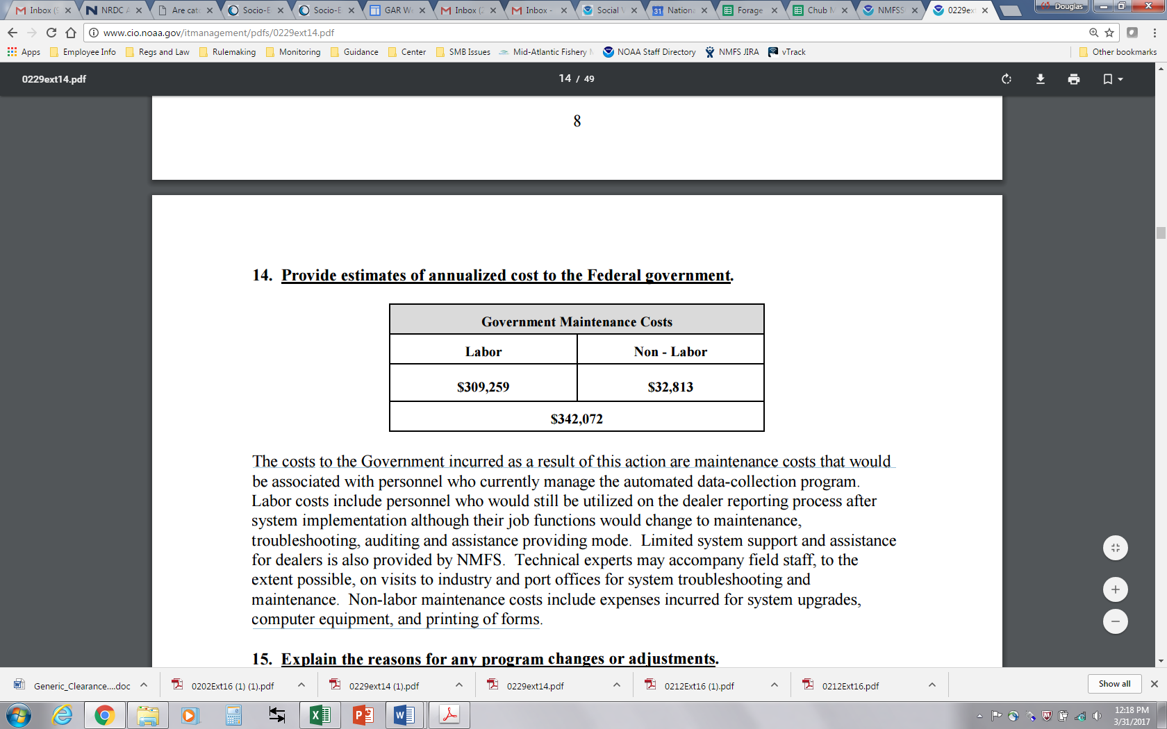 The costs to the Government incurred as a result of this action are maintenance costs that would be associated with personnel who currently manage the automated data-collection program.