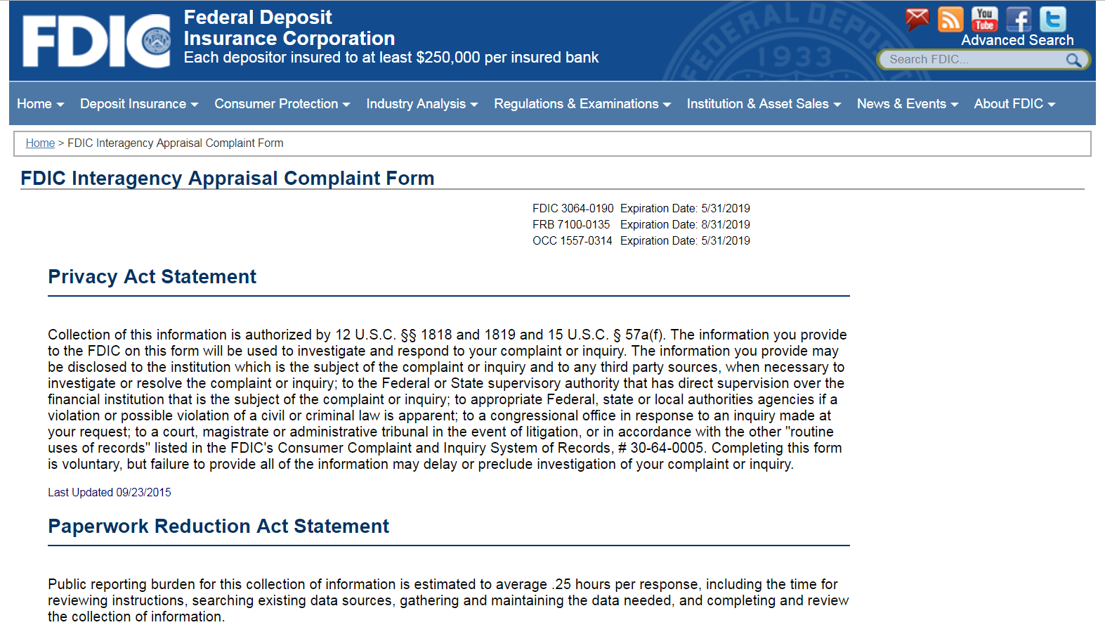 FDIC Interagency Appraisal Complaint Form