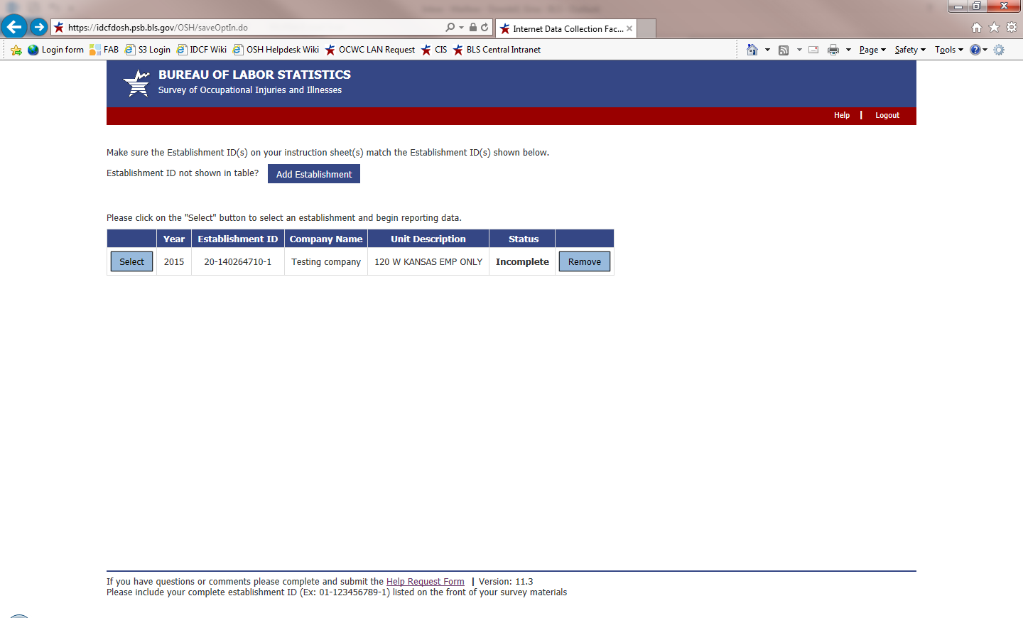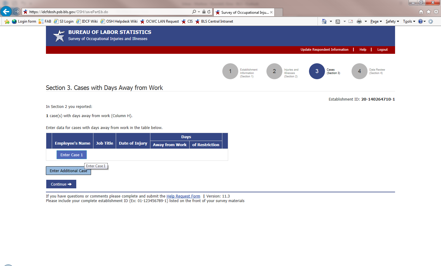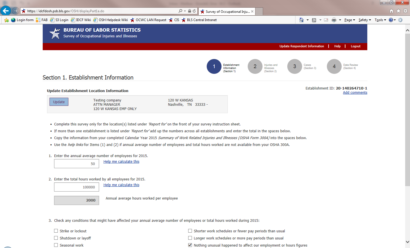 Enter your establishment's identifying information (establishment ID, address, and contact information), and then enter your establishment's injury and illness data.