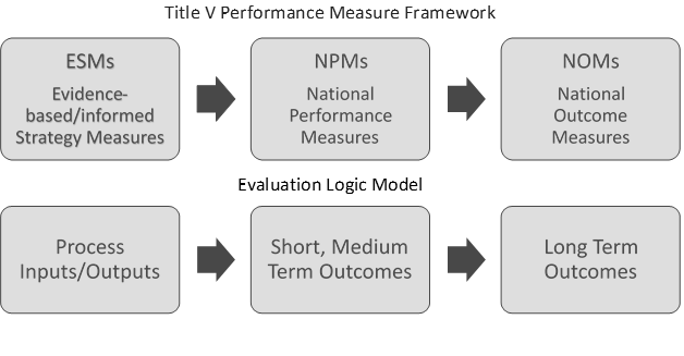 In partnership with the State Title V program leadership and other key stakeholders, the MCHB initiated a major transformative effort in 2013 for the MCH Block Grant to ensure its continued relevance in a changing health care environment and to maximize the program’s effectiveness in responding to current and future needs of the nation’s mothers and children, including CSHCN. During the three-year implementation period, states applied a new three-tiered performance framework (depicted on the following page) to the development of a five-year State Action Plan.