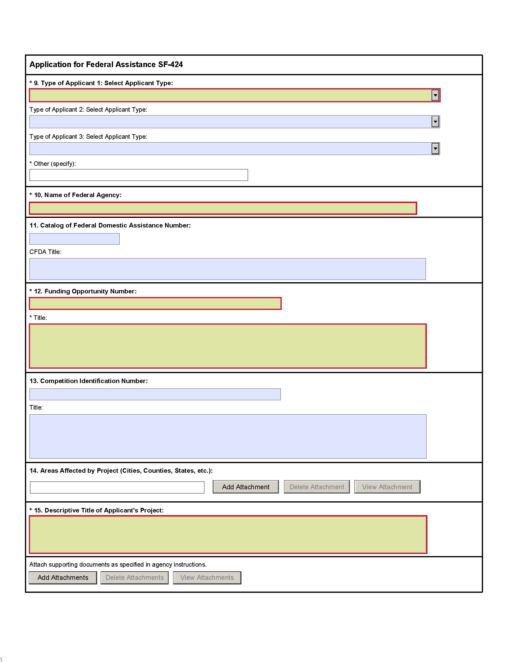 This is a standard form required for use as a cover sheet for submission of pre-applications and applications and related information under discretionary programs. Some of the items are required and some are optional at the discretion of the applicant or the federal agency (agency). Required fields on the form are identified with an asterisk (*) and are also specified as "Required" in the instructions below. In addition to these instructions, applicants must consult agency instructions to determine other specific requirements.