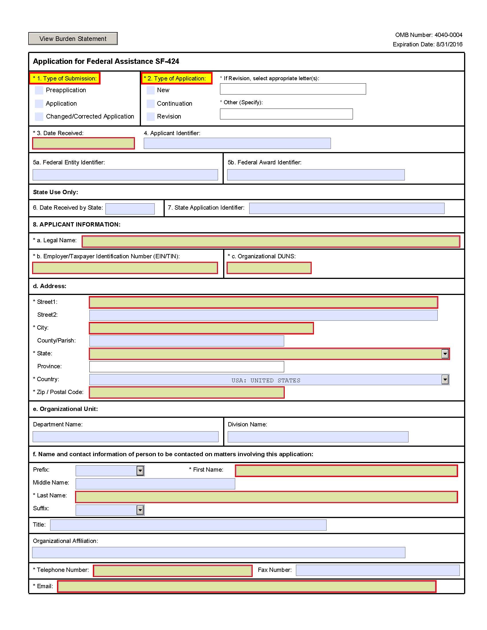 Form 1 Application for Federal Assistance (Standard Form - 424)