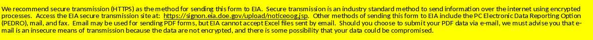 | This report is mandatory under the Federal Energy Administration Act of 1974 (Public Law 93-275). Failure to comply may result in criminal fines, civil penalties and other sanctions as provided by law. For further information concerning sanctions and data protections see the provision on sanctions and the provision concerning the confidentiality of information in the instructions. Title 18 USC 1001 makes it a criminal offense for any person knowingly and willingly makes to any Agency or Department of the United States any false, fictitious, or fraudulent statements as to any matter within its jurisdiction. | ||||||||||||||||||||||||||