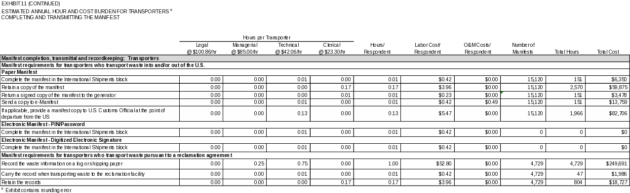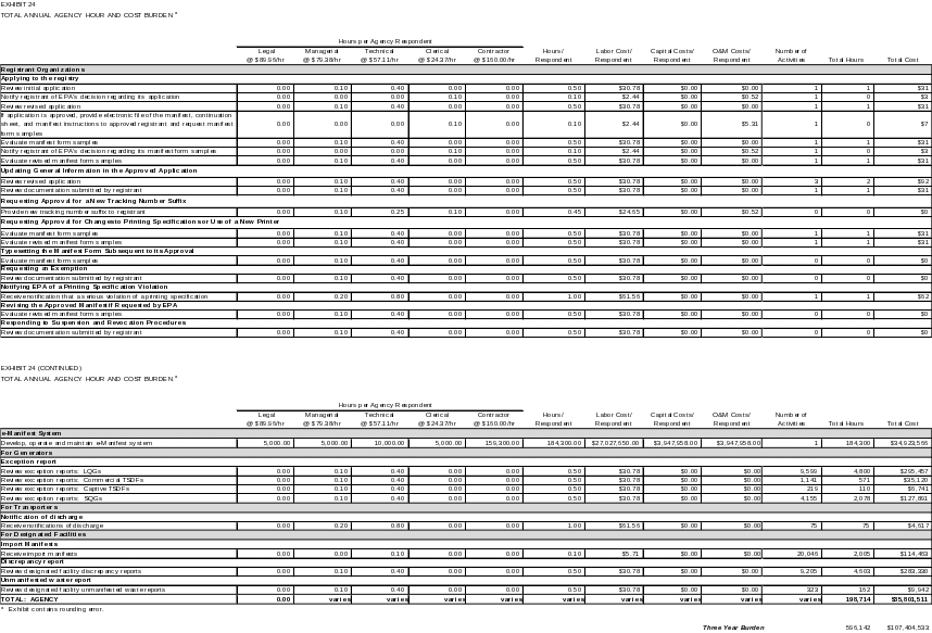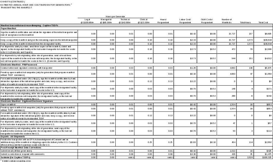 24 This includes form completion, transmittal to industry third parties, and recordkeeping performed by generators, transporters and TSDFs/receiving facilities.