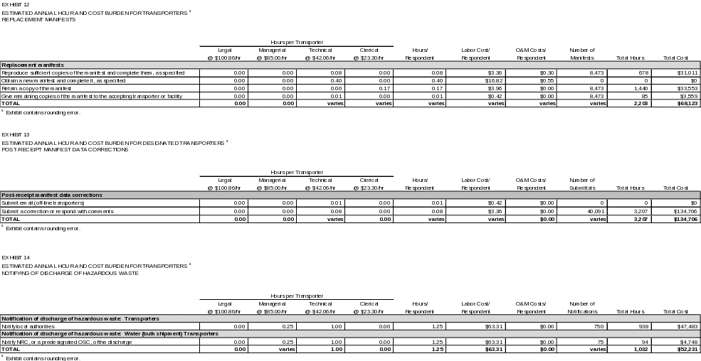 48 This ICR does not burden transporters manifesting state hazardous waste (paper or electronic) for reading the regulations. Such transporters perform this activity because of state-specific, broader-in-scope program requirements in the absence of federal requirements to do so.