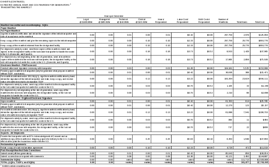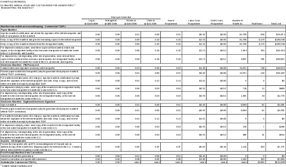 73 This ICR does not estimate burden for paper manifests accompanying state hazardous waste, except as otherwise specified at the beginning of Section 6 of this document and in Section 6D.