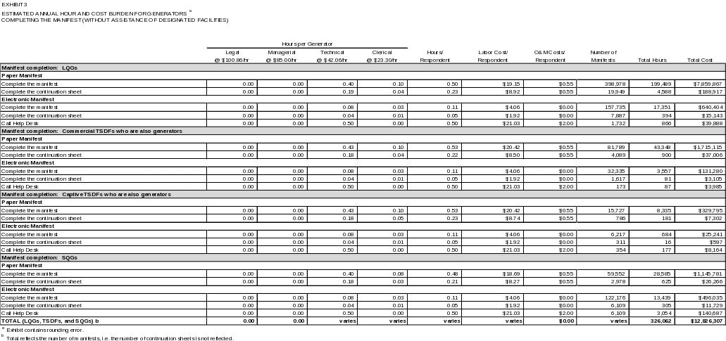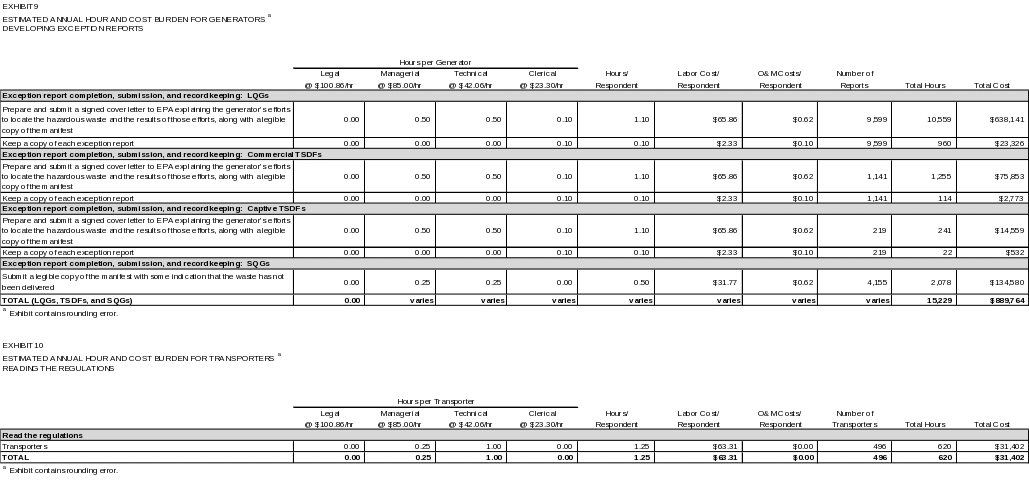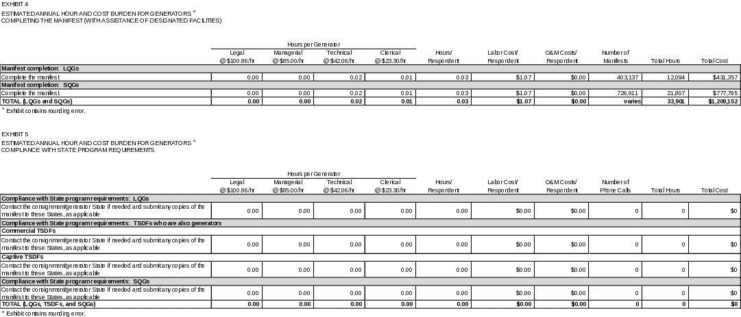 46 This ICR does not burden generators manifesting state hazardous waste (paper or electronic) for exception reporting. Such generators perform this activity because of state-specific, broader-in-scope program requirements in the absence of federal requirements to do so.