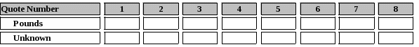 Enter the appropriate number of pounds for each quote. (Breaks at 1/10/25/50/75/100)