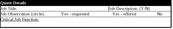 Schedule/Quote: Work Schedule: