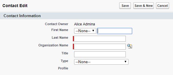 This creates the new Contact, but does not assign a Profile to the new Contact. Follow the steps in section 2.3 to make the new Contact an Admin User, User, or Viewer.