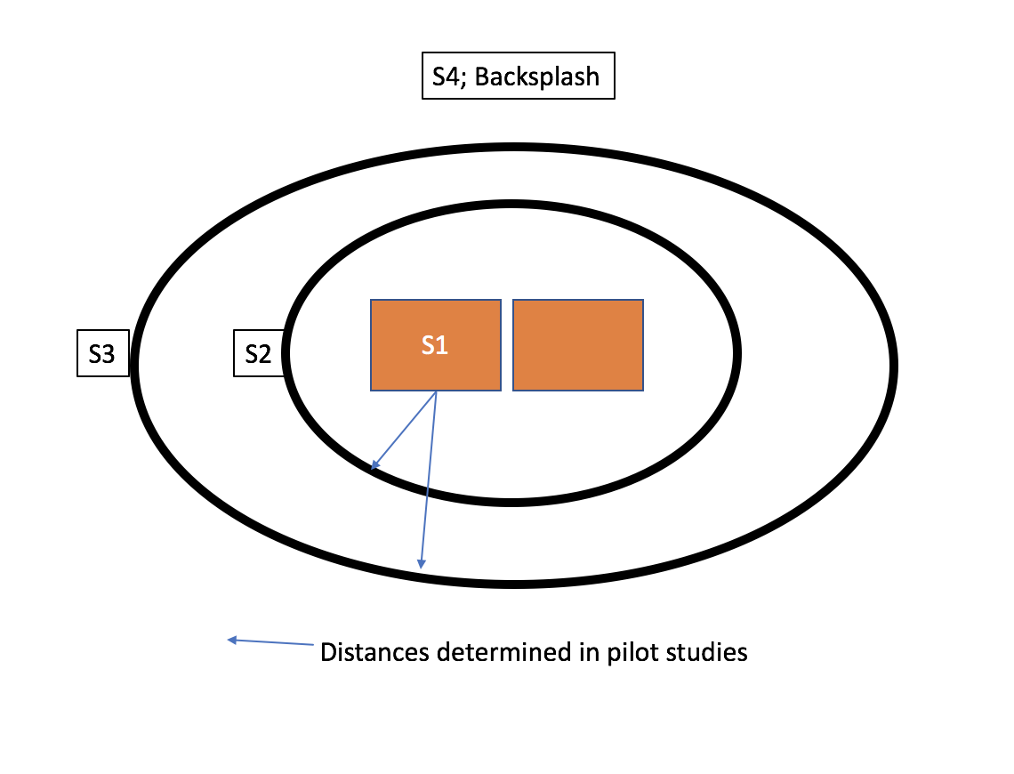 Participants will be instructed to prepare the chicken as they would at home using the new spice blend as seasoning. Participants will be instructed that part of the data collection will be taking a photo of the raw, seasoned chicken product. They will be asked to wait in the lobby area of the kitchens while the “photo” is taken. During this time, swabs will be taken from the inner sink, outer sink area 1, outer sink area 2, outer sink area 3 (exact radius to be determined in pilot testing but estimated to be 3 feet from the sink based on previous research [Everis & Betts, 2003; Henley et al., 2016]). Figure 1 illustrates the swabbing areas.