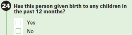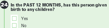 Interviewers may also truncate this question in error without recognizing the critical nature of the “past 12 months.” In the past few years, Census Bureau data review analysts noted unusually high ACS fertility rates in some areas. An investigation determined that a small number of interviewers did not ask the question correctly and falsely identified women as giving birth in the past 12 months when they really had given birth at any earlier point in time. The Census Bureau suppressed the fertility data for these areas and retrained the interviewers.