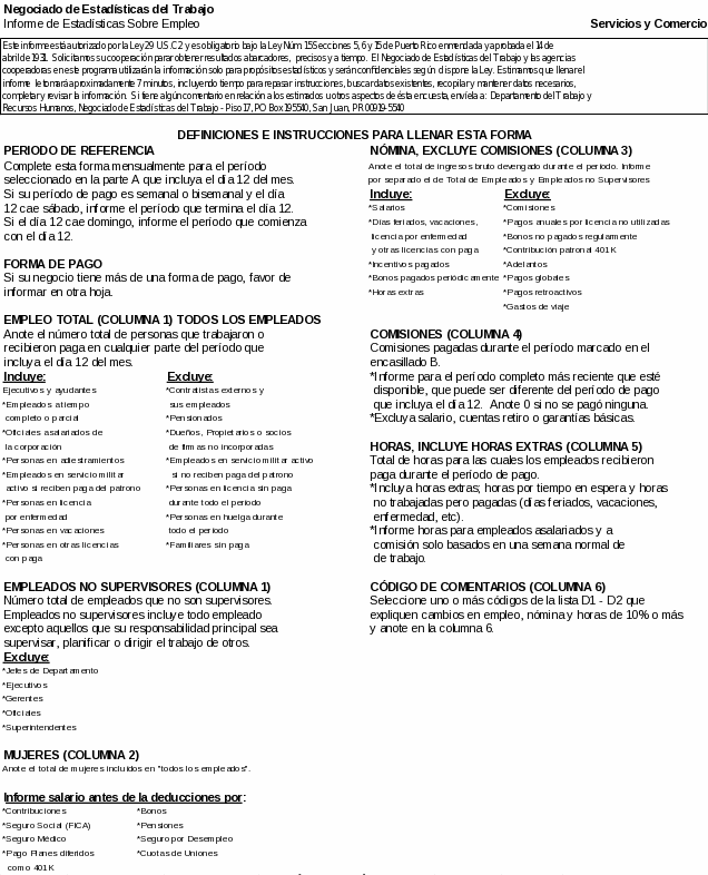 ¡Gracias por su cooperación! El Negociado de Estadísticas del Trabajo (BLS) utilizará su información para determinar el empleo asalariado de Puerto Rico como parte del programa de Estadísticas Sobre Empleo (CES).