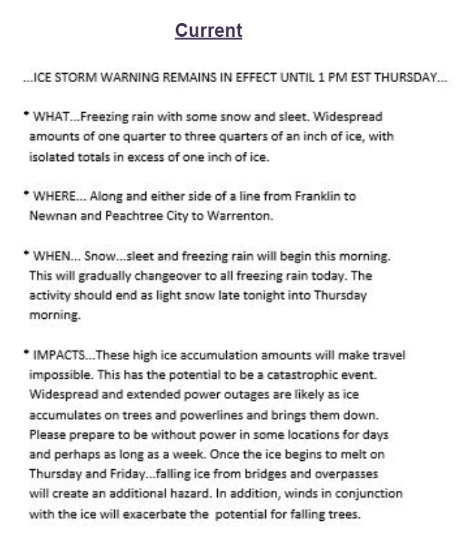 Sample Ice Storm Warning product examples to be used in the survey: