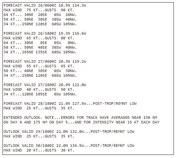 Here is an example of a Tropical Cyclone Forecast/Advisory (TCM):