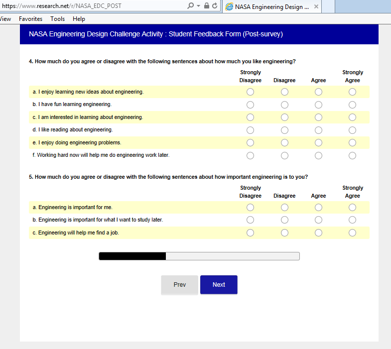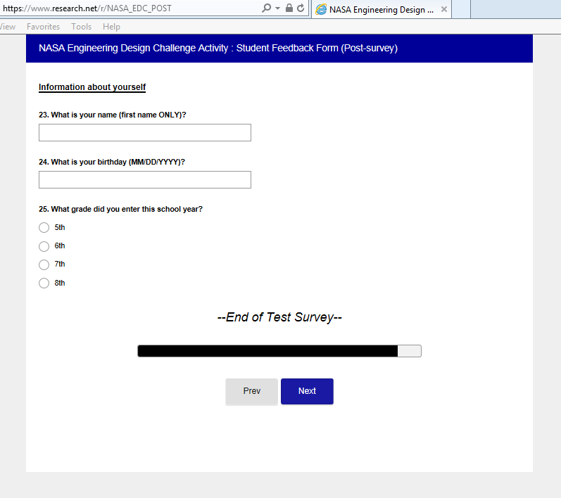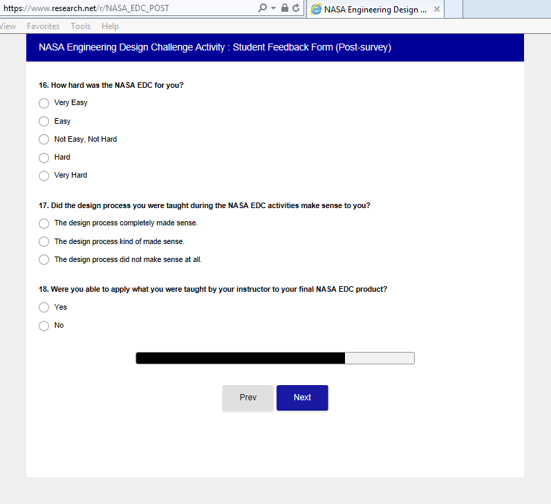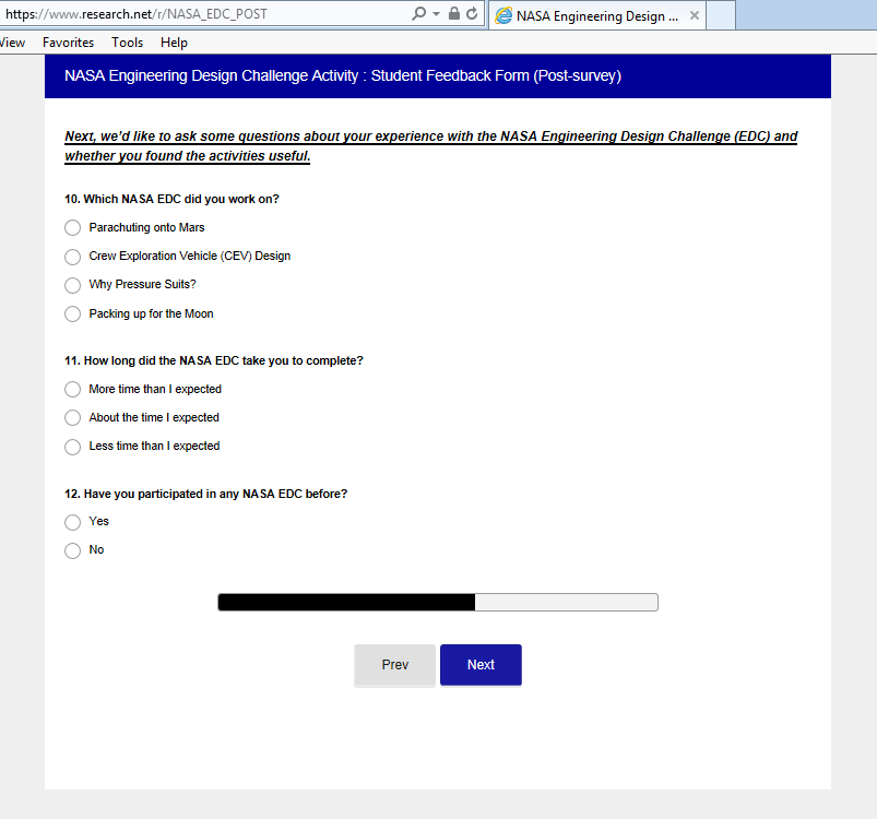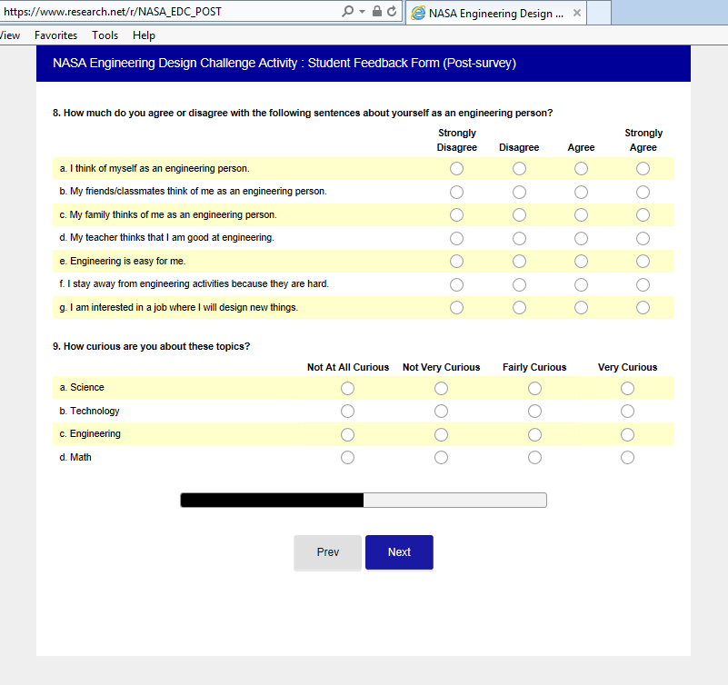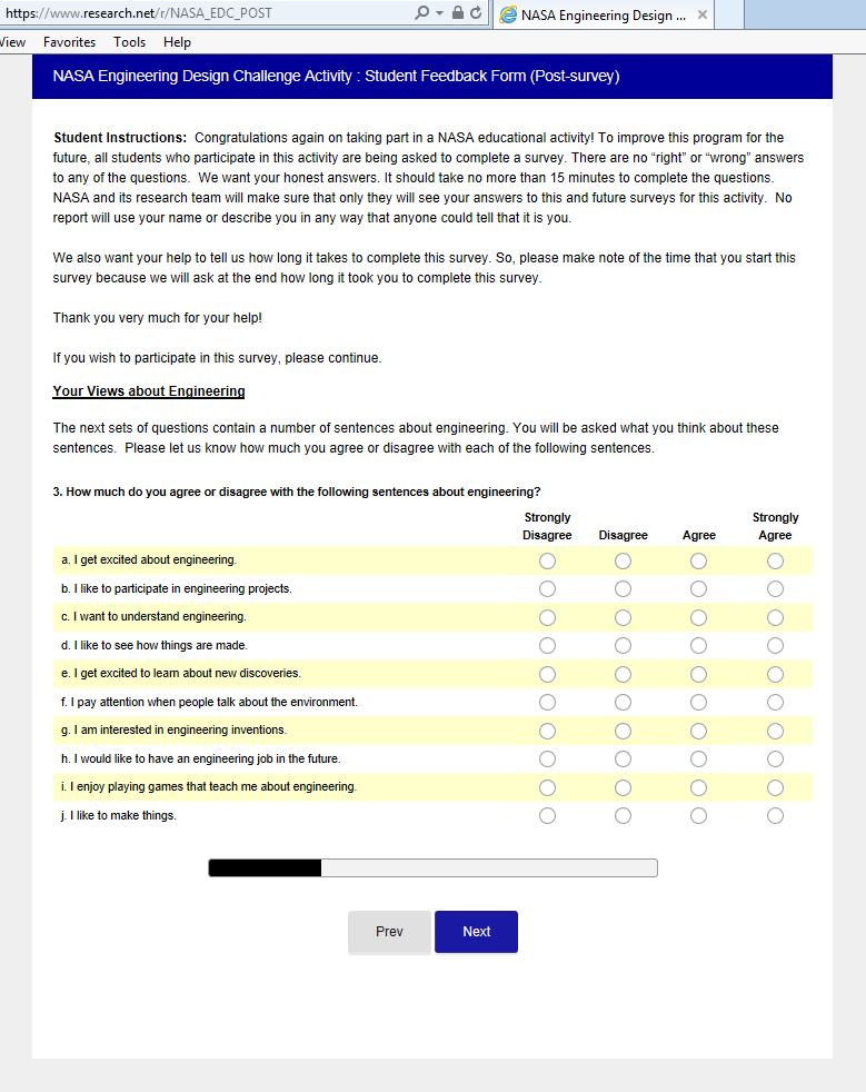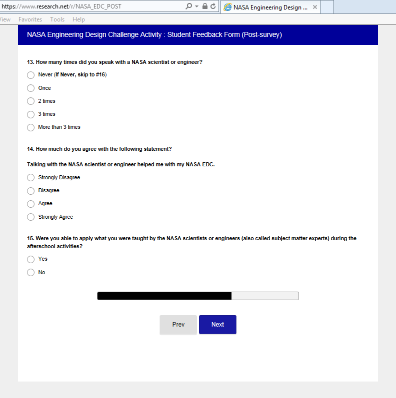 4-NASA Education SCIS - STUDENT FOLLOW-UP INSTRUMENT- EDC Student Screenshots