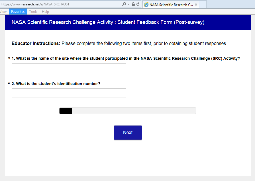 NASA Education STEM Challenges Impact Survey.Student Follow-up Instrument