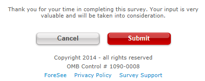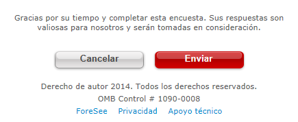 Encuesta sobre la satisfacción Gracias por visitar el sitio Web del proveedor de Medicare de FCSO. Usted ha sido seleccionado al azar para tomar parte en esta encuesta administrada por ForeSee de parte de First Coast Service Options. Tome un minuto o dos de su tiempo para darnos sus opiniones. Sus respuestas ayudarán a First Coast Service Options mejorar su sitio Web y servirle mejor en el futuro. Todos los resultados son estrictamente confidenciales. |