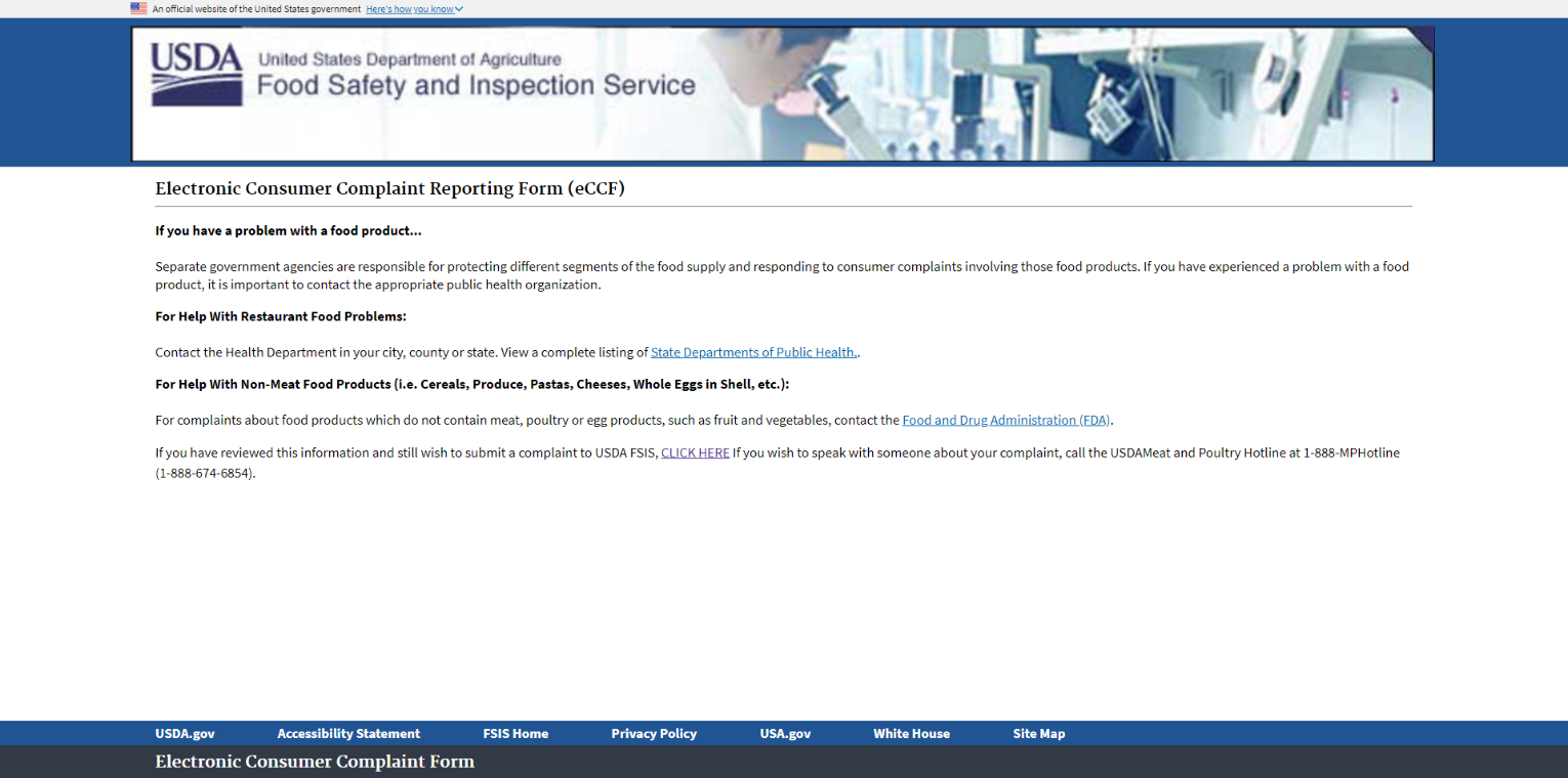 Consumer Complaint Monitoring System-Food Safety Mobile Questionnaire