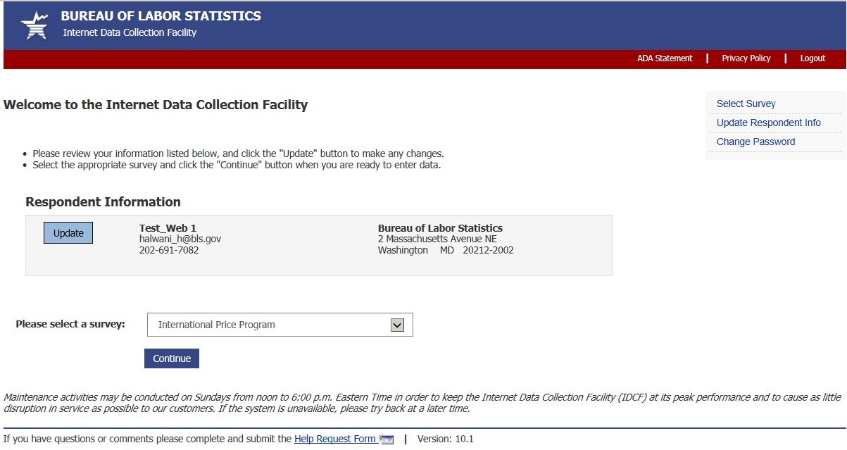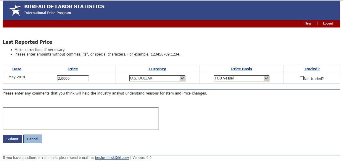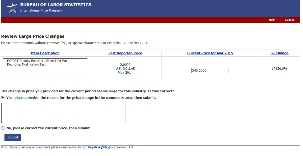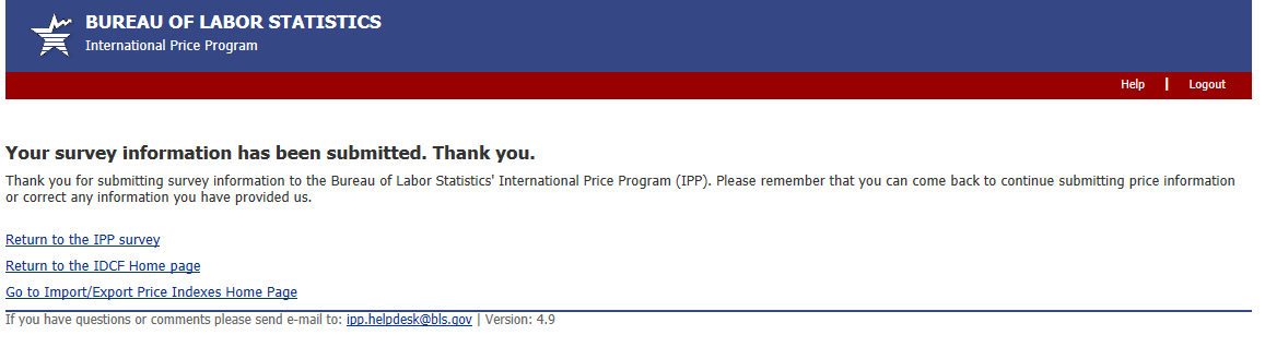 Import/Export Price Survey website