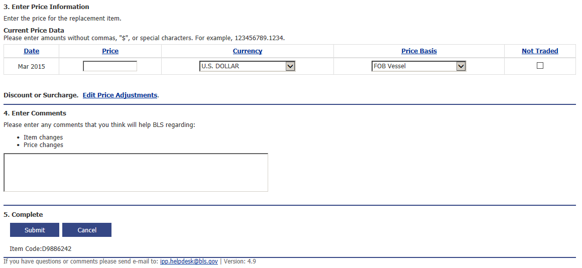 Submit Price Information Screen (Step 2)