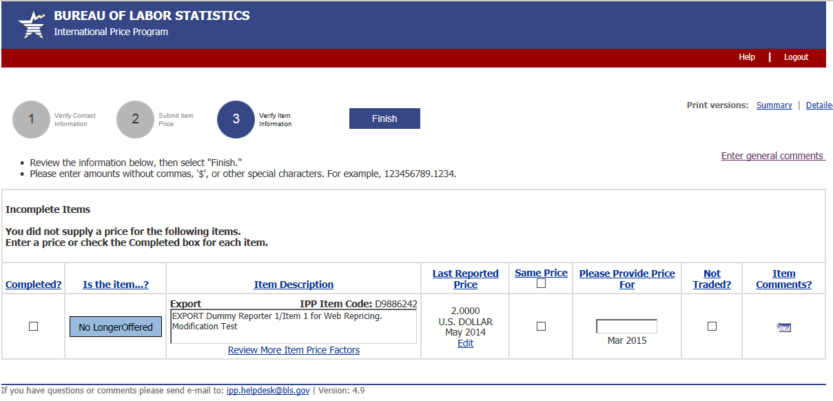 Verify Price Information Screen (Step 3)