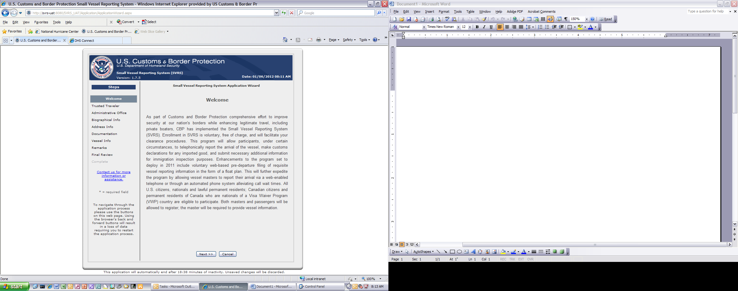 You are about to access a Department of Homeland Security computer system. This computer system and data therein are property of the U.S. Government and provided for official U.S. Government information and use. There is no expectation of privacy when you use this computer system. The use of a password or any other security measure does not establish an expectation of privacy. By using this system, you consent to the terms set forth in this notice. You may not process classified national security information on this computer system. Access to this system is restricted to authorized users only. Unauthorized access, use, or modification of this system or of data contained herein, or in transit to/from this system, may constitute a violation of section 1030 of title 18 of the U.S. Code and other criminal laws. Anyone who accesses a Federal computer system without authorization or exceeds access authority, or obtains, alters, damages, destroys, or discloses information, or prevents authorized use of information on the computer system, may be subject to penalties, fines or imprisonment. This computer system and any related equipment is subject to monitoring for administrative oversight, law enforcement, criminal investigative purposes, inquiries into alleged wrongdoing or misuse, and to ensure proper performance of applicable security features and procedures. DHS may conduct monitoring activities without further notice.