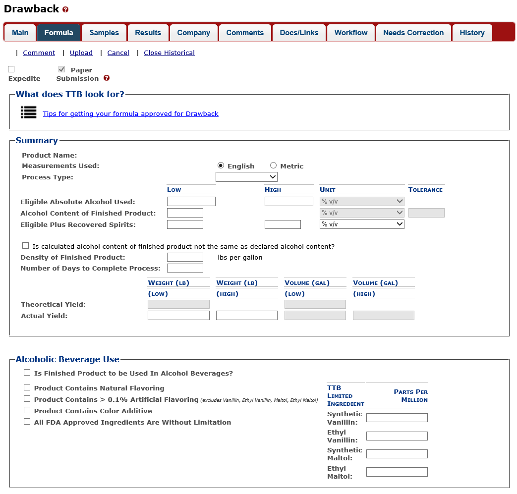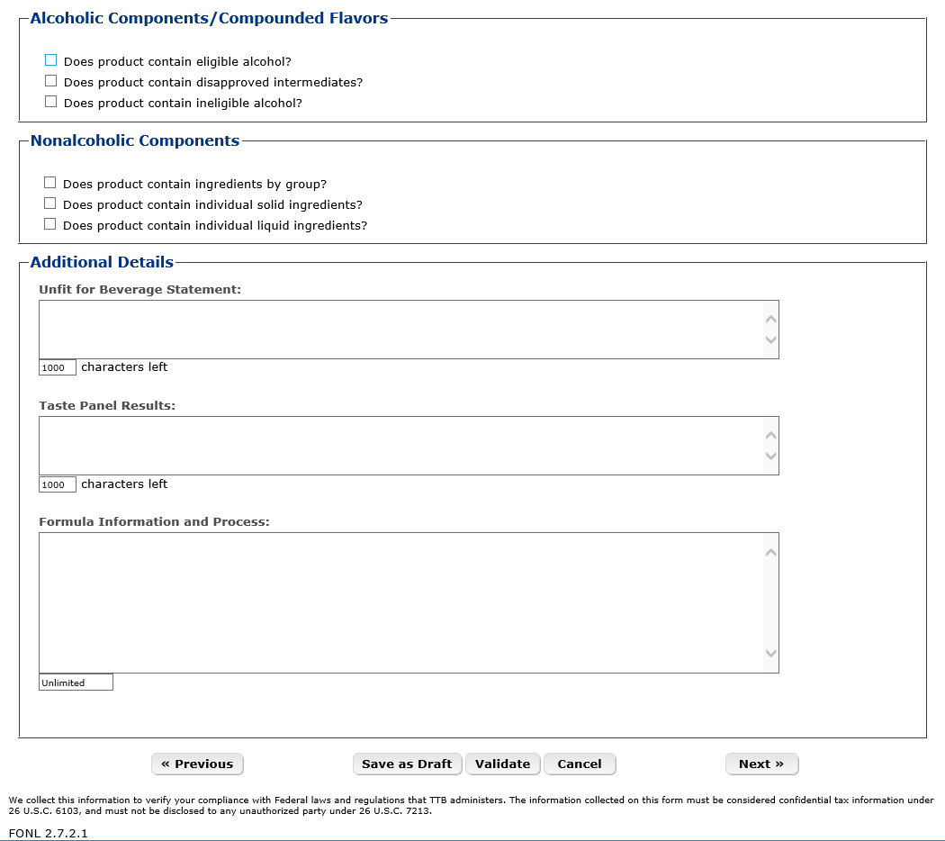 Formula Tab – Alcoholic Components – Ineligible Alcohol