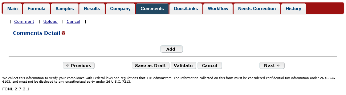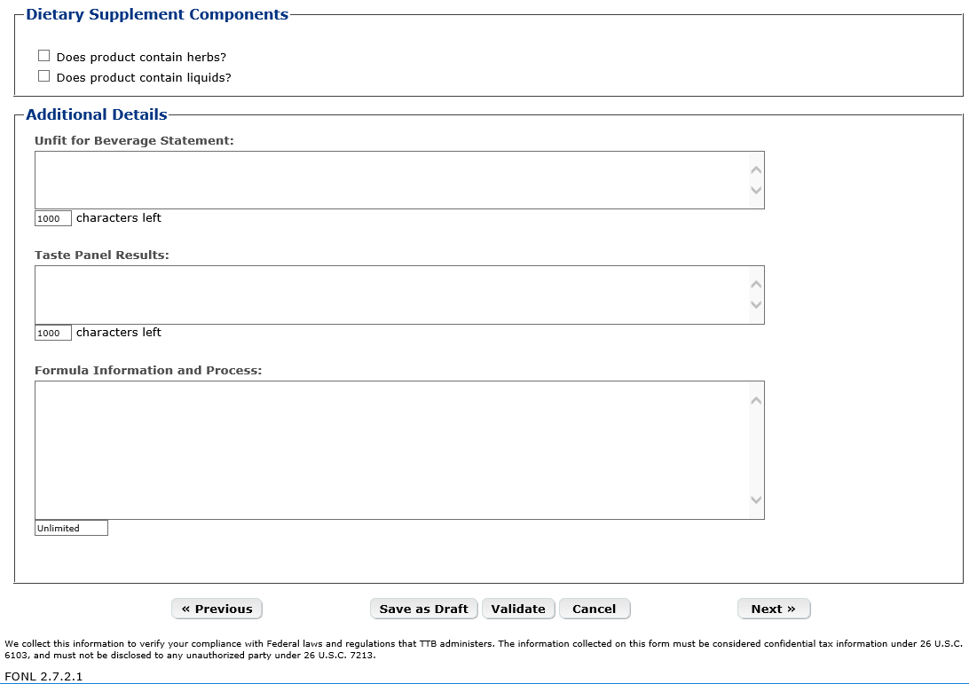 Formula Tab – Alcoholic Components – Disapproved Intermediates