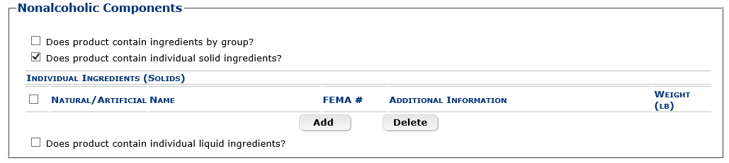 Formula Tab – Nonalcoholic Components – Solid Ingredients