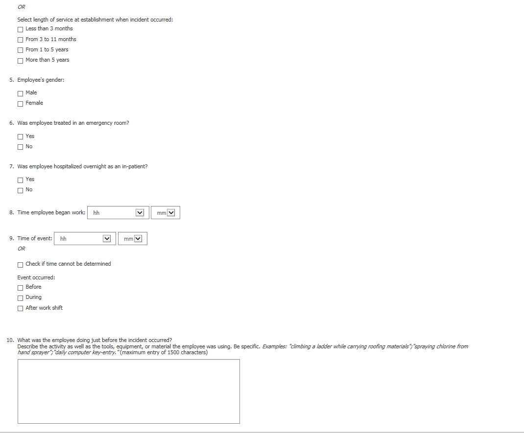 Survey of Occupational Injuries and Illnesses
