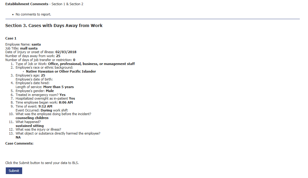 Survey of Occupational Injuries and Illnesses - Private Sector