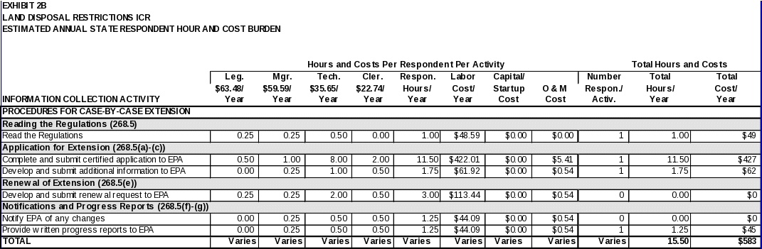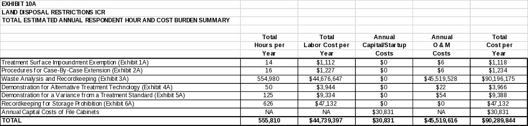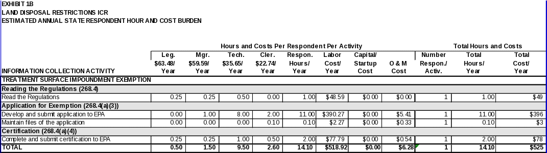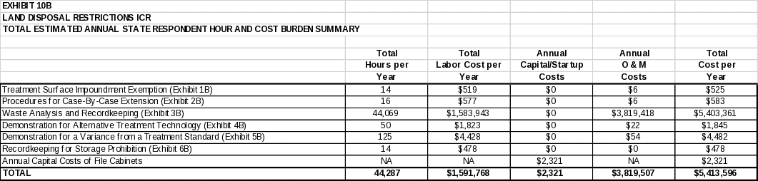 Table 2 below summarizes the annual hour and cost burden for respondents in both the private sector and State governments. The bottom line hourly burden for the Federal government (found in exhibits 8 and 9) is 3,700 hours (584 + 3,116). The bottom line cost burden for the Federal government is $145,557 ($25,484 + $120,073) per year.
