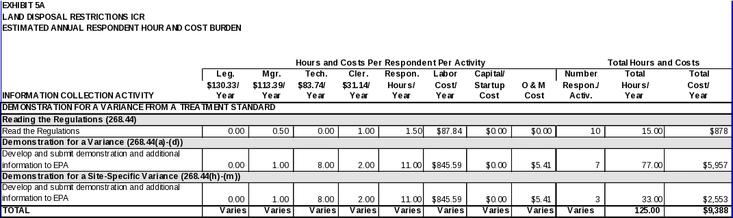 Based on its best judgment, EPA estimates that, each year, four facilities will seek a variance from a specified treatment method. These facilities are expected to read the regulations at 40 CFR 268.42. In addition, these facilities are expected to prepare and submit a demonstration and any other information requested by EPA.