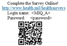 Complete the survey on the Internet by accessing the following URL (http://www.health.mil/healthsurveys) and selecting “Survey #3: TRICARE Select Survey of Civilian Providers (TSS-P)”